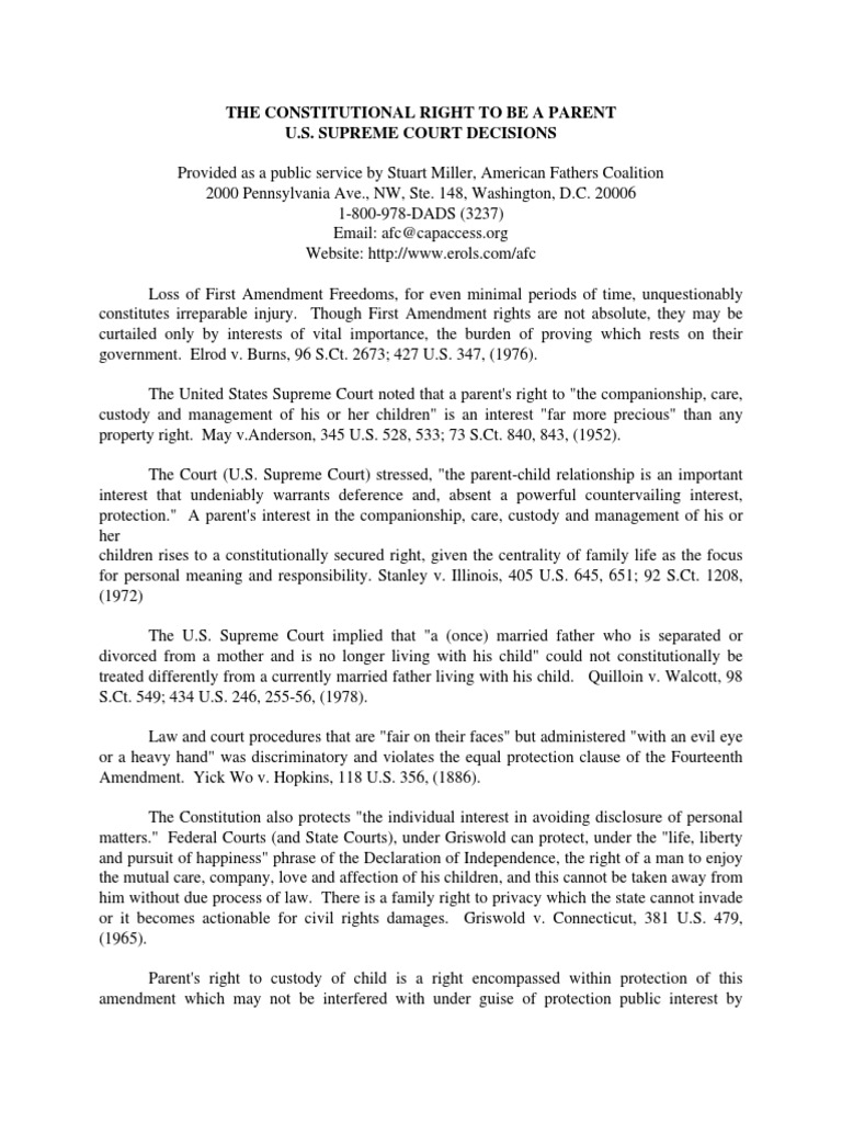 Supreme court and federal court rulings highlighted below recognize parents’ constitutional rights to. the 2022 law, called the florida parental rights in education act,. in a case involving a state proceeding to terminate the parental rights of an indigent without providing her counsel, the court. But why is it so significant? a summary of the supreme court's parental rights doctrine: a parent must serve a child’s emotional and physical needs and protect the child from abuse from the other parent. the term “parental rights” frequently surfaces when discussing family law and child welfare. Up until 2000, the supreme court consistently upheld parental rights. the body of the guide details what the parent can expect with emphasis on legal counsel, education and school rights,.
